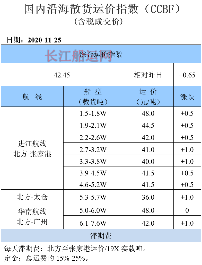 11月25日国内沿海运价参考