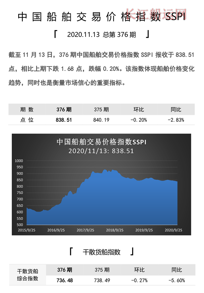 376期中国船舶交易价格指数SSPI【2020.10.31-202011.13】