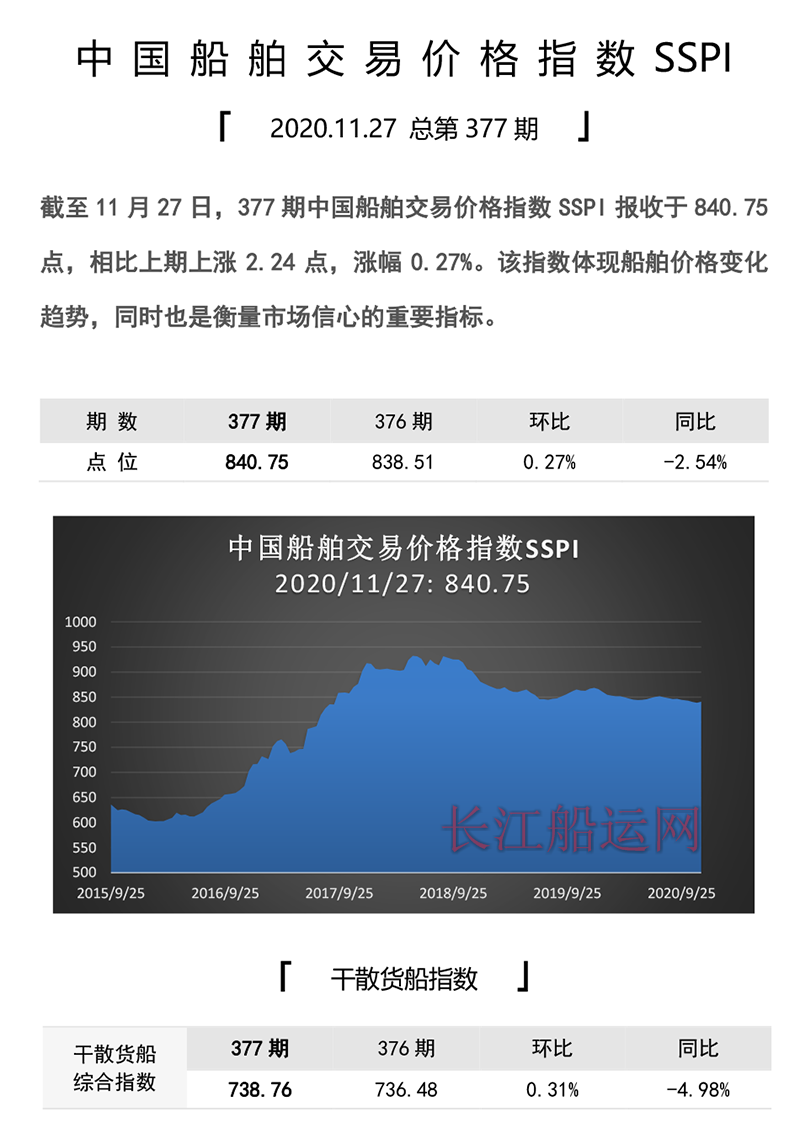 377期中国船舶交易价格指数SSPI【2020.11.14-202011.27】