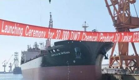 3月16日,大船集团山船重工为西班牙ELCANO公司建造的37000载重吨化学品船提前一天出坞。