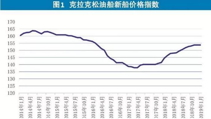 油船新船价格扭转下滑趋势。2018年以来,油船价格出现显著回升,扭转了2014年以来的下滑态势。今年3月,油船新船价格指数升至155。从具体船型来看,超大型油船(VLCC)价格涨幅最大。2018年12月,VLCC价格为9250万美元,同比上涨13.5%;苏伊士型油船价格为6050万美元,同比上涨10%;阿芙拉型油船价格为4800万美元,同比上涨9.1%;成品油船价格为3650万美元,同比上涨8.1%。进入2019年,油船价格仍在小幅上涨。